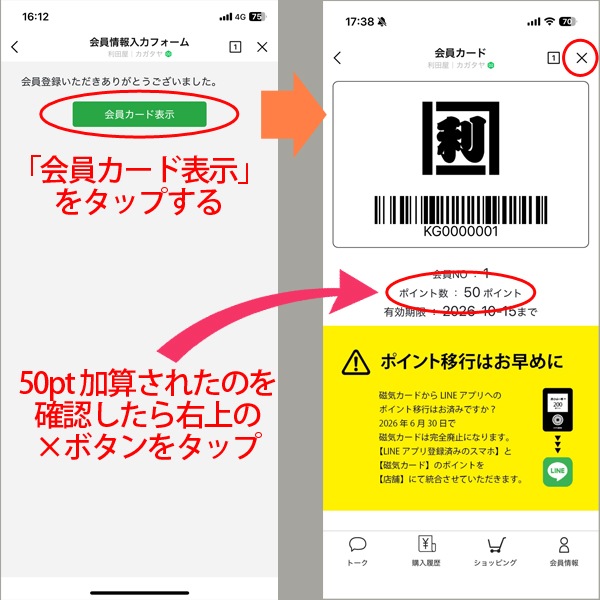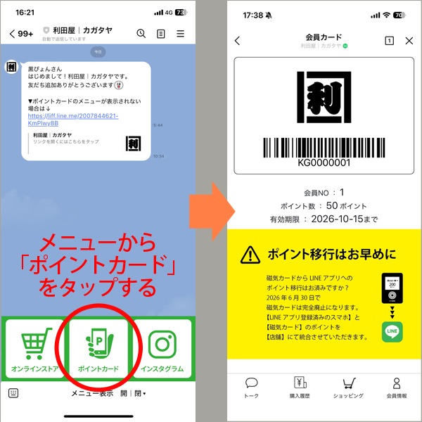 LINEアプリ(デジタル会員証)の登録・移行手順 |